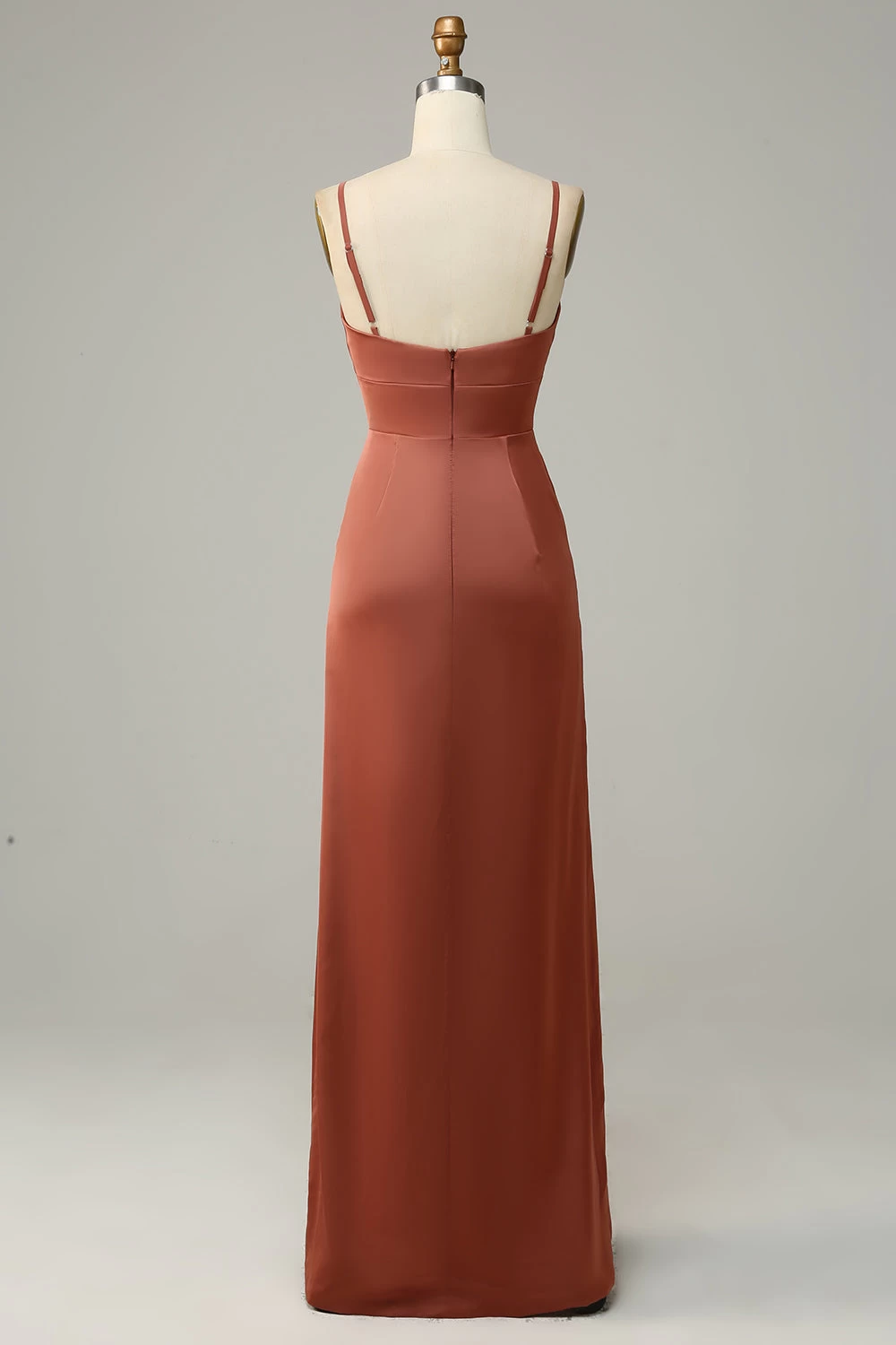 Baksteen Rode Schede Spaghetti Riemen Satijnen Bruidsmeisje Jurk Met Split