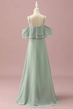 Sage Straps Cold Shoulder Chiffon Junior Bruidsmeisje Jurk