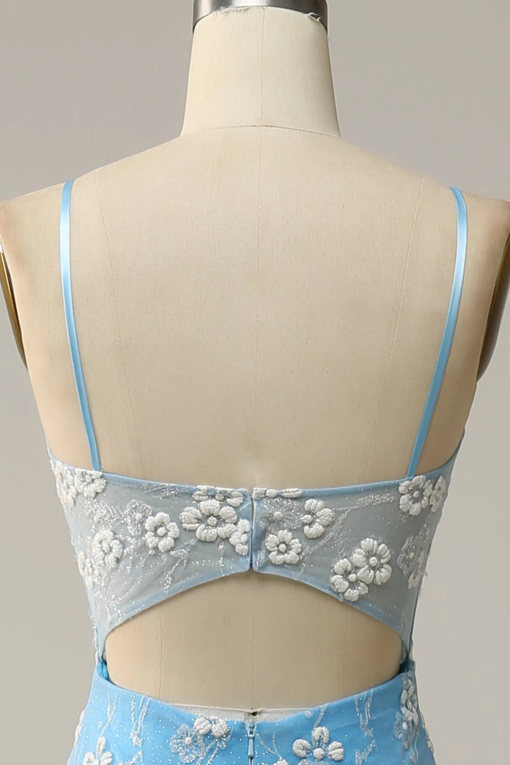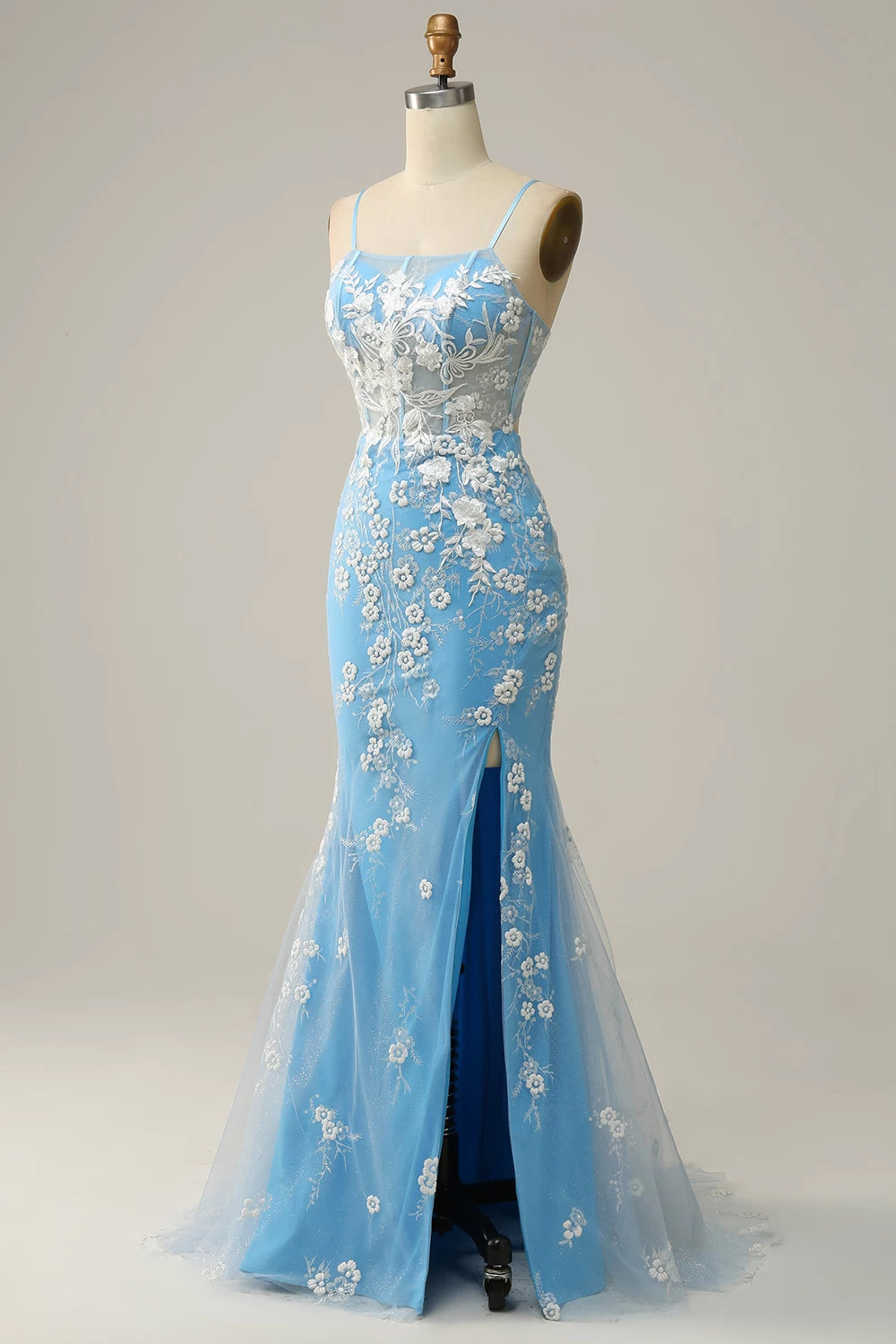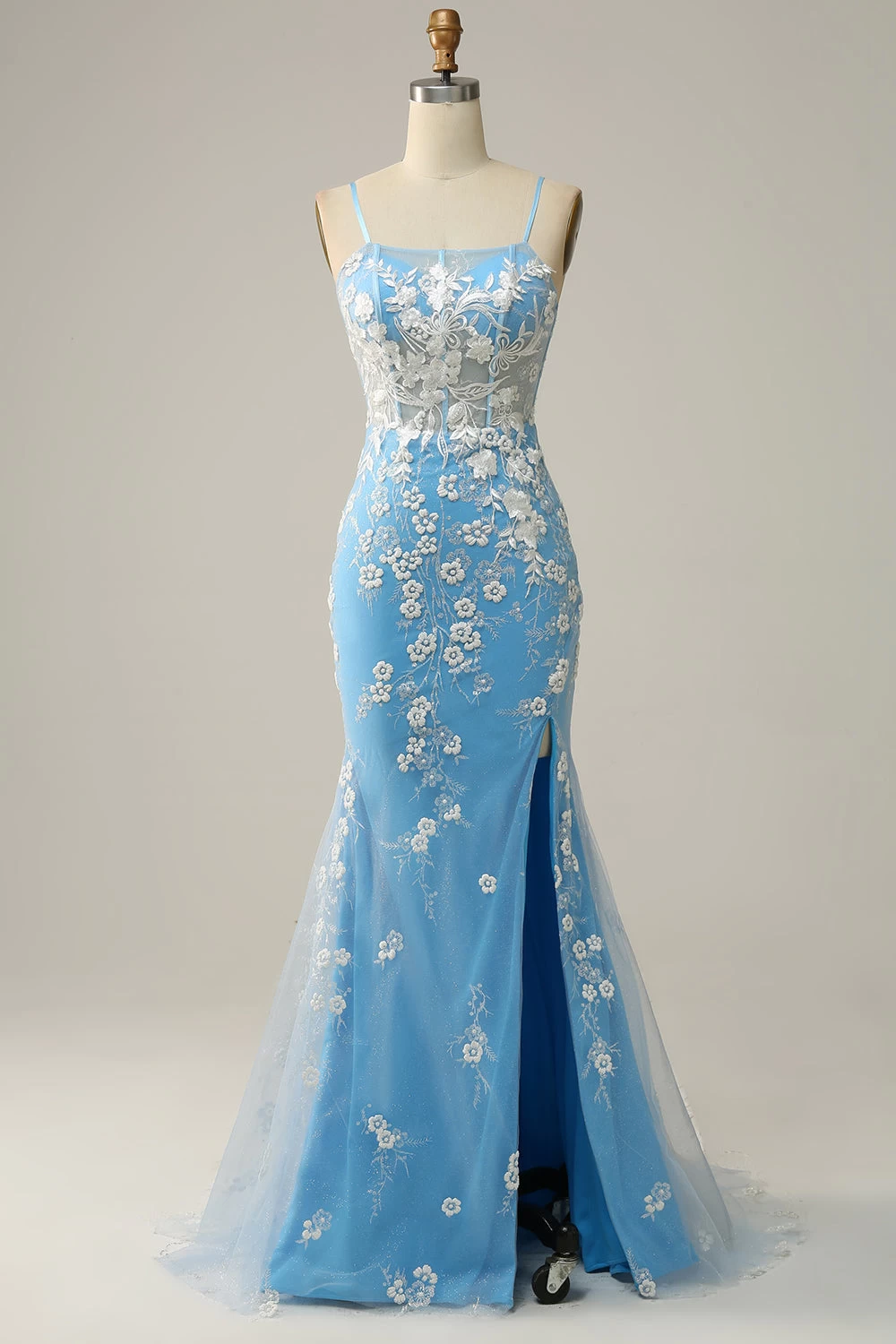 Zeemeermin Spaghetti Bandjes Blauw Lang Galajurk Met Appliques